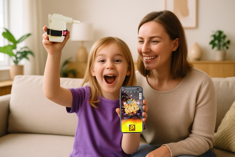 Happy Playphysio user enjoying respiratory therapyChild having fun with Playphysio breathing exercisesFamily enjoying Playphysio together
